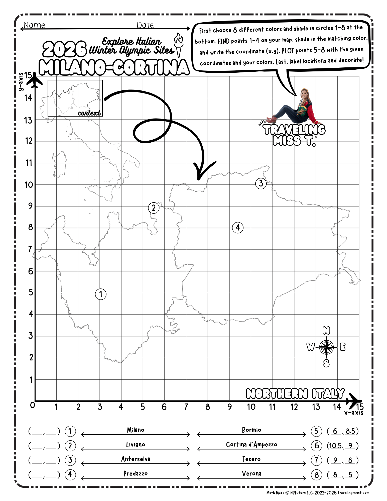 Natalie TeboulAs learners plot coordinates, famous host locations begin to appear, including Milan and Cortina d'Ampezzo. Suddenly, graphing isn’t just numbers on a grid... It’s a passport to the Games.