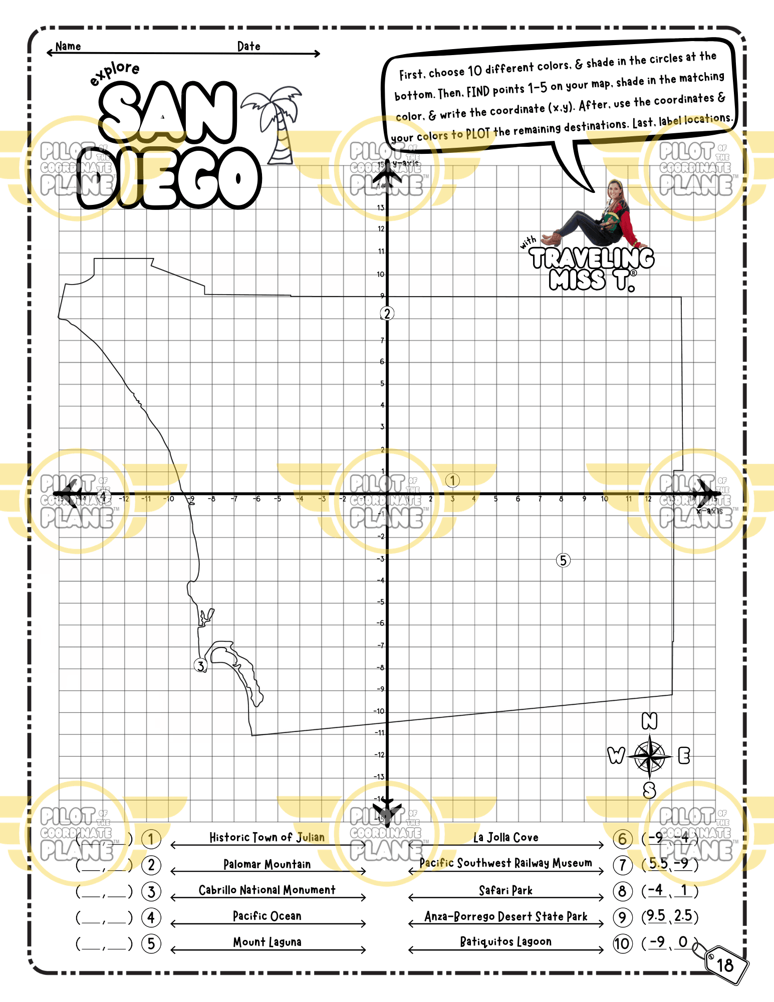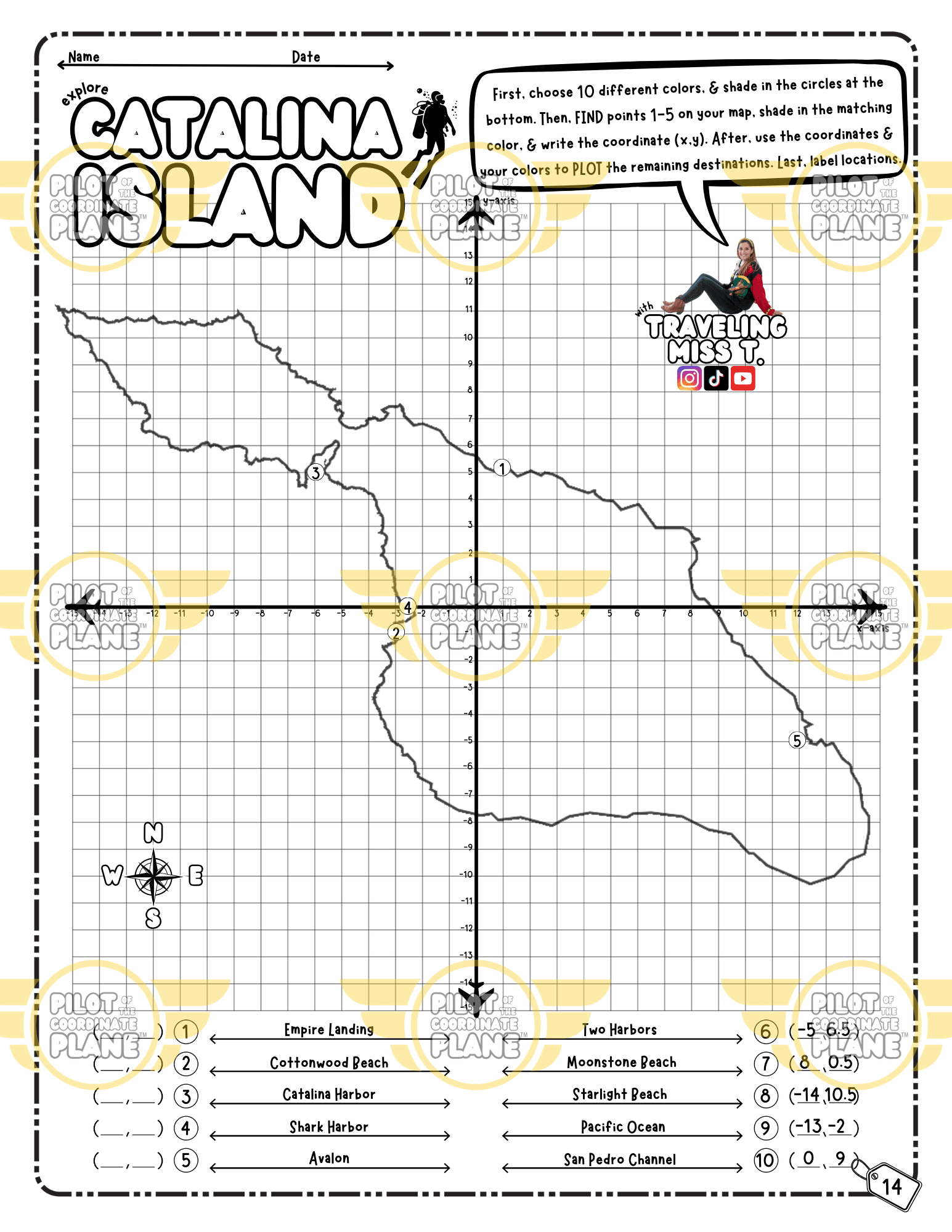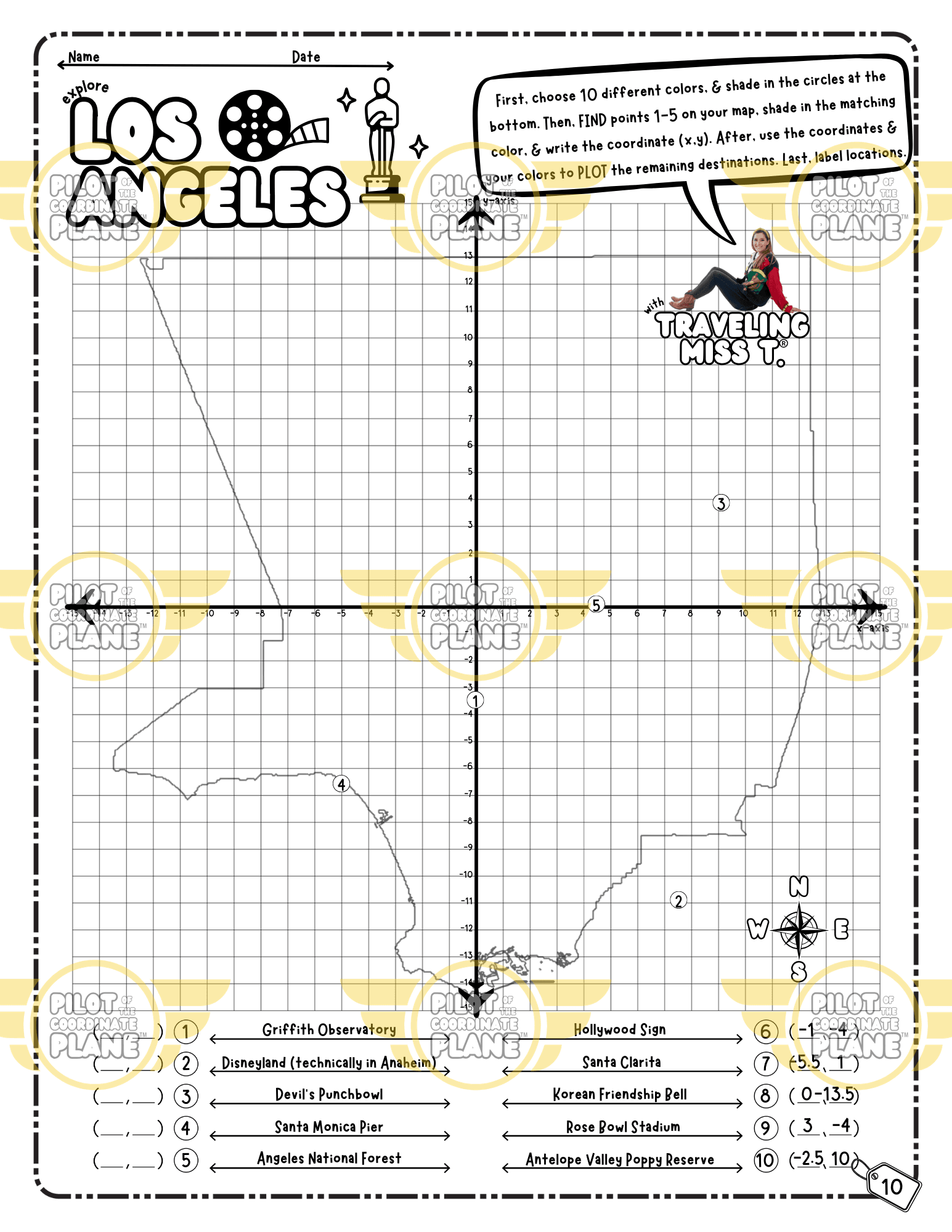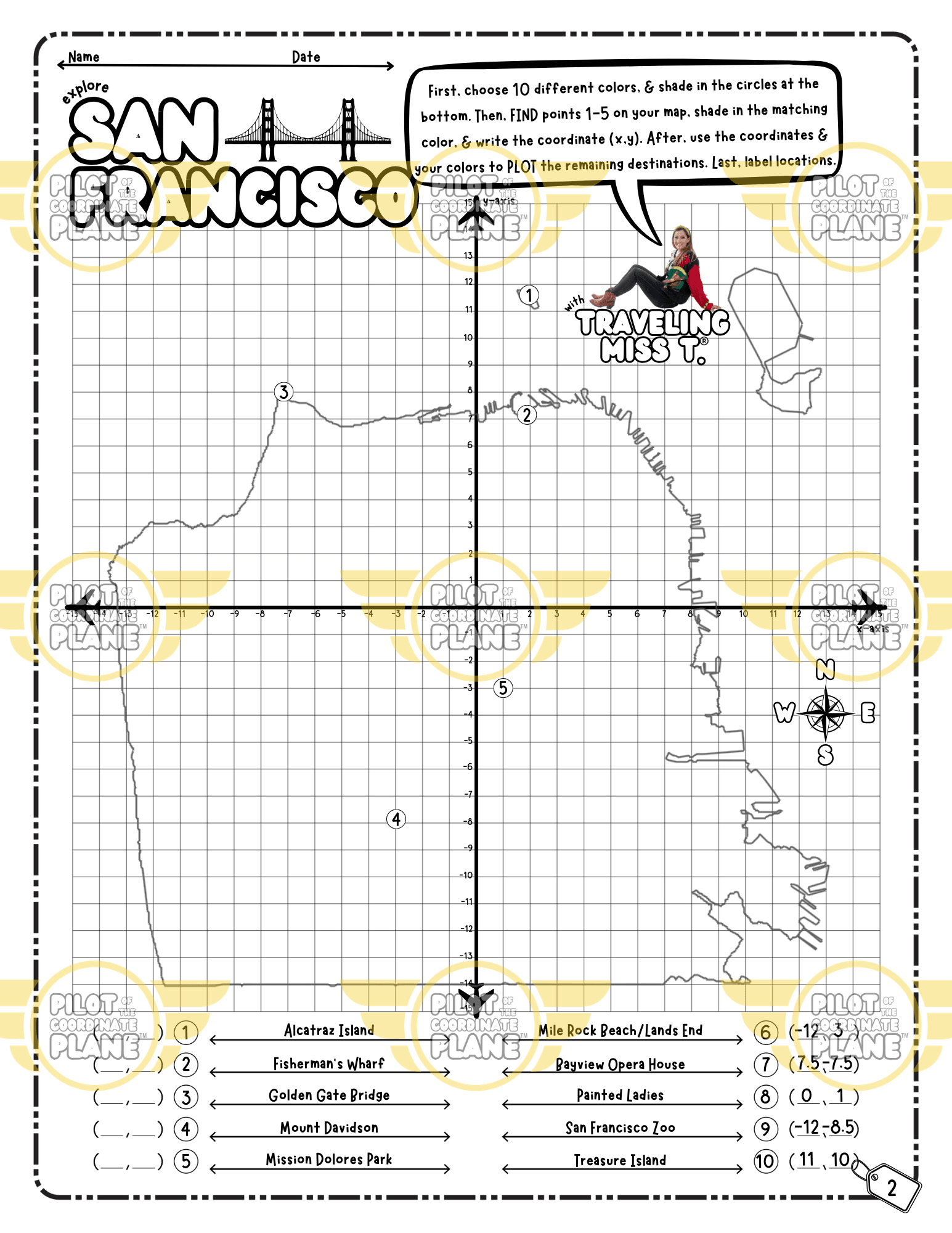 Welcome Aboard the Coordinate Plane! This bundle explores locations across California! This bundle includes San Francisco, Lake Tahoe, Los Angeles, Catalina Island, San Diego, and Disneyland Math Maps. Extensions and answer keys included for each destination.