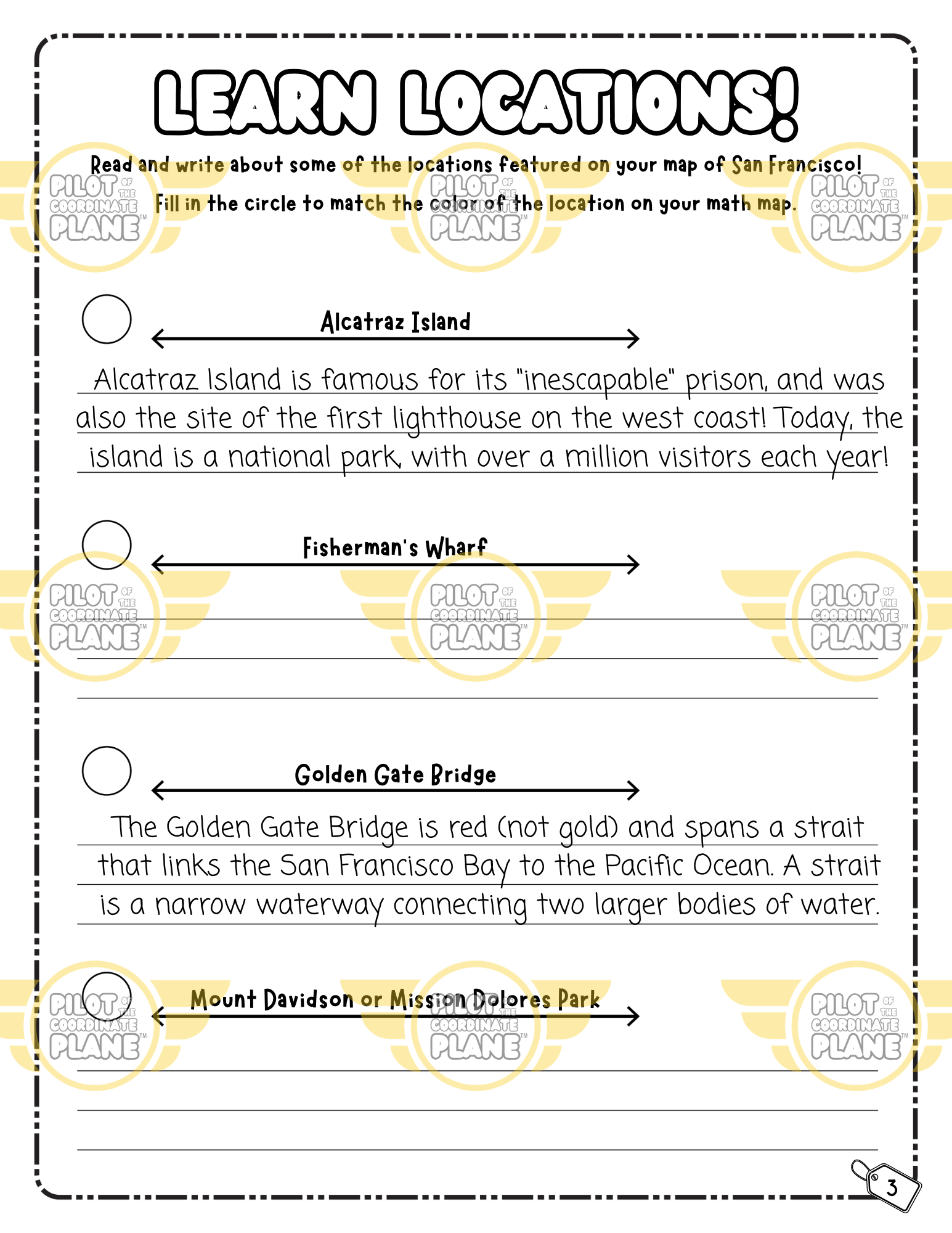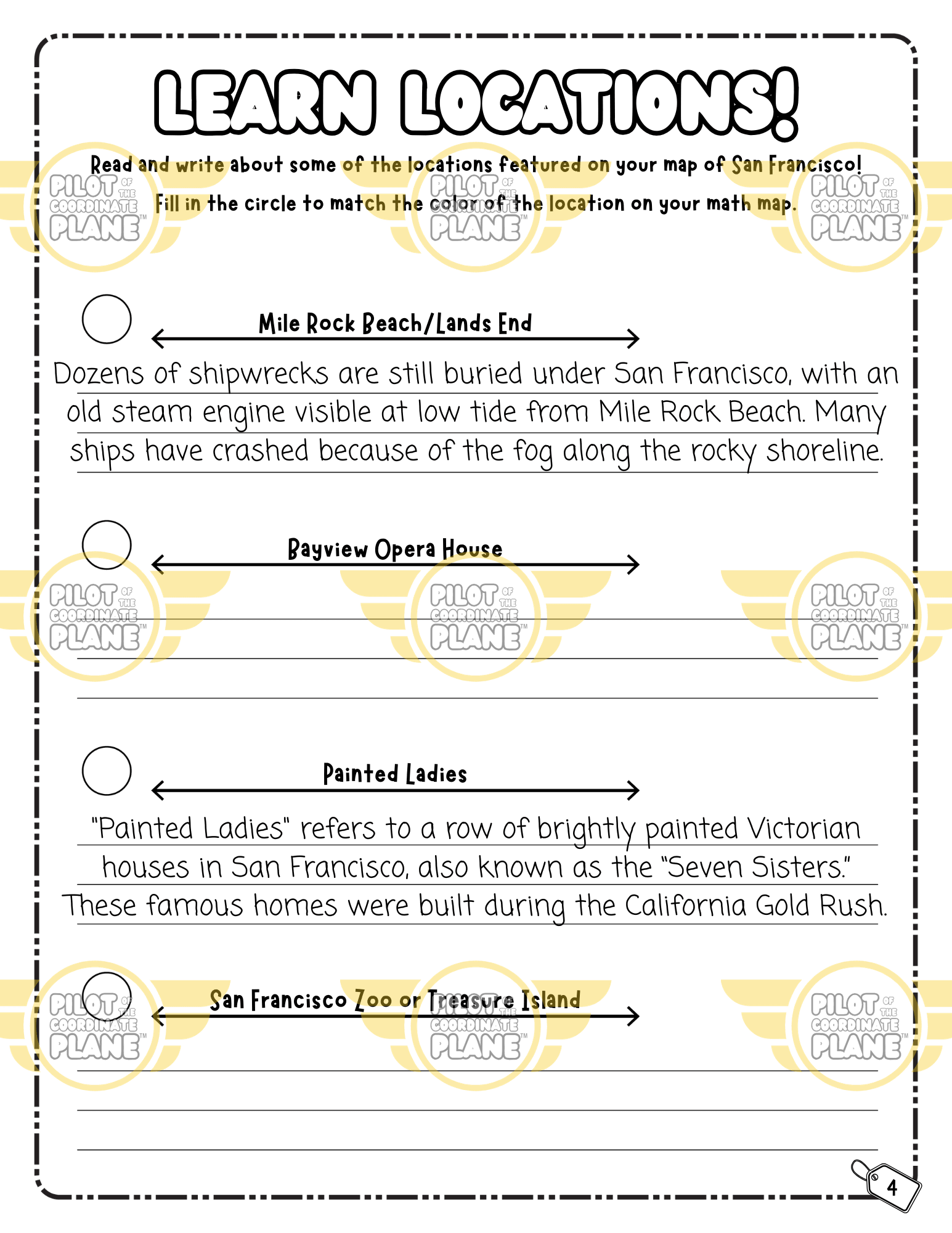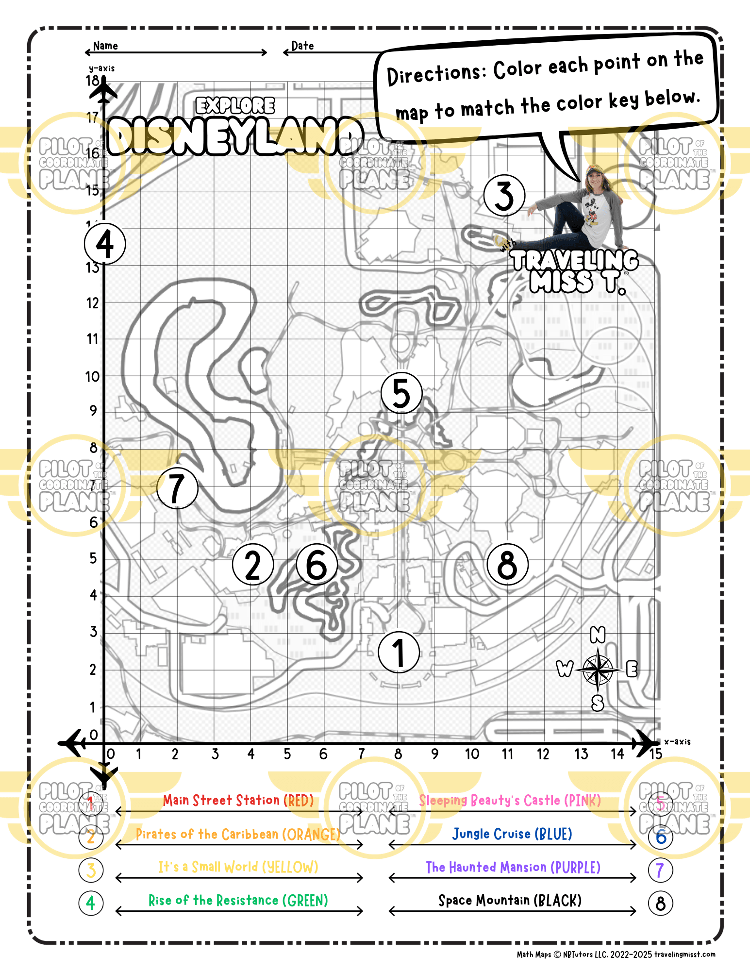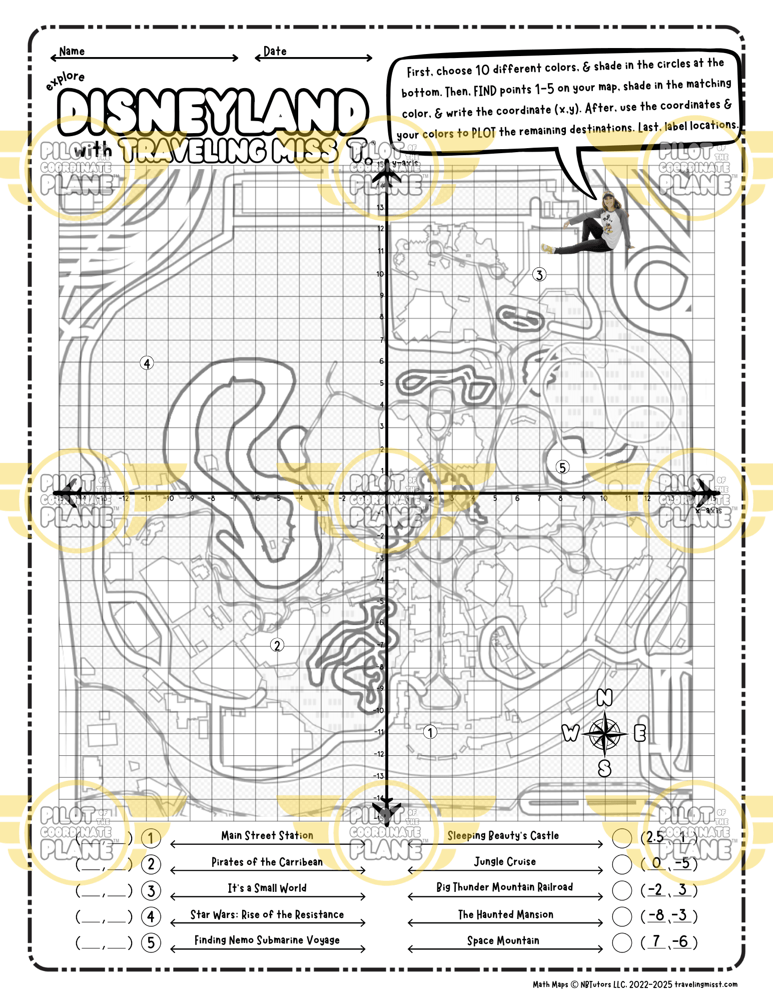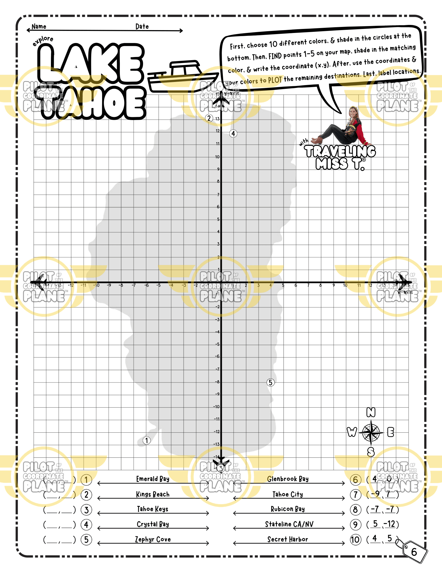 Welcome Aboard the Coordinate Plane! This bundle explores locations across California! This bundle includes San Francisco, Lake Tahoe, Los Angeles, Catalina Island, San Diego, and Disneyland Math Maps. Extensions and answer keys included for each destination.
